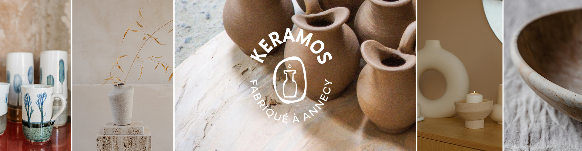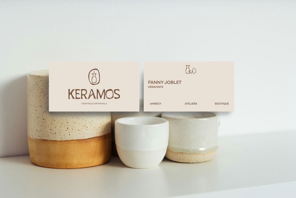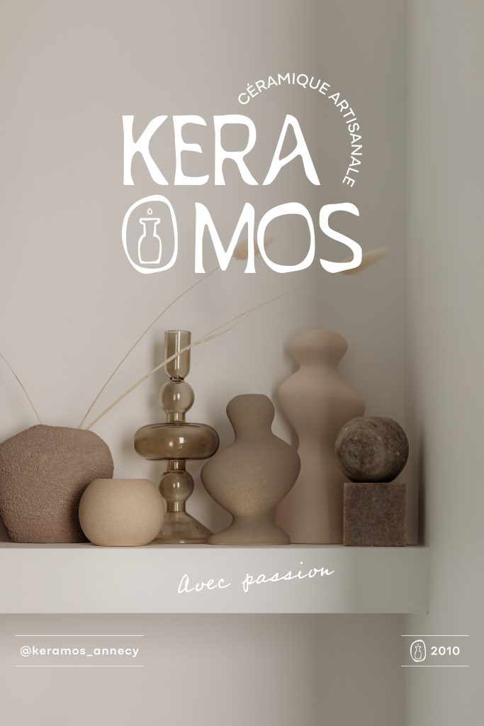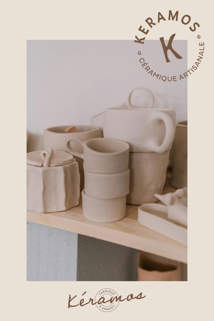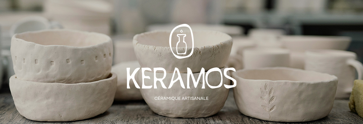 Artisane et fière de l’être, la marque KERAMOS se devait d’avoir une identité visuelle fidèle au savoir-faire et aux valeurs portées par sa créatrice. L’atelier annécien travaille à la fois le gré, la porcelaine et la faïence. Toutes les trois, des terres de haute température qui deviennent au fil des heures de travail, des œuvres uniques, parfaitement modelées.